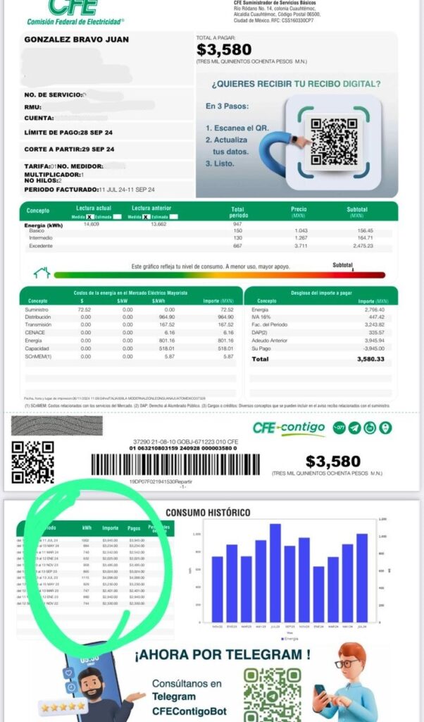 Consulta tu recibo de CFE más reciente para ver tu consumo mensual de electricidad. La cantidad total de electricidad utilizada estará normalmente en la parte inferior de la factura en kilovatios hora (kWh).